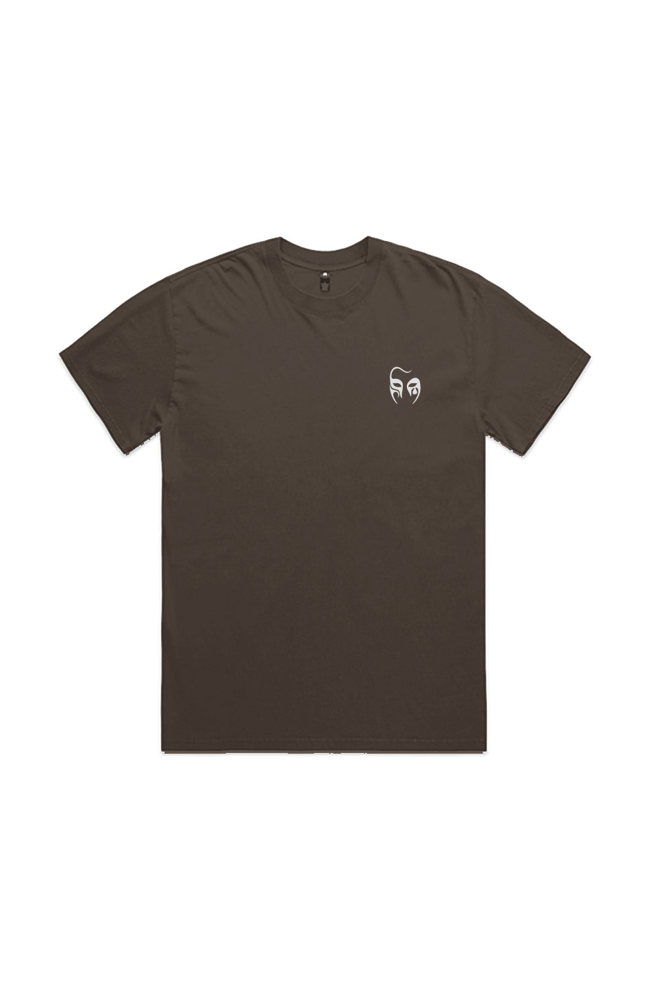 The Voiceless No More Brown Tee by PIERO turns vintage art into modern resistance. The back features a stylized classical painting of two theatrical figures, Pierrot and Arlecchino, set behind bold, raw lettering that breaks across the canvas: “VOICELESS NO MORE.”