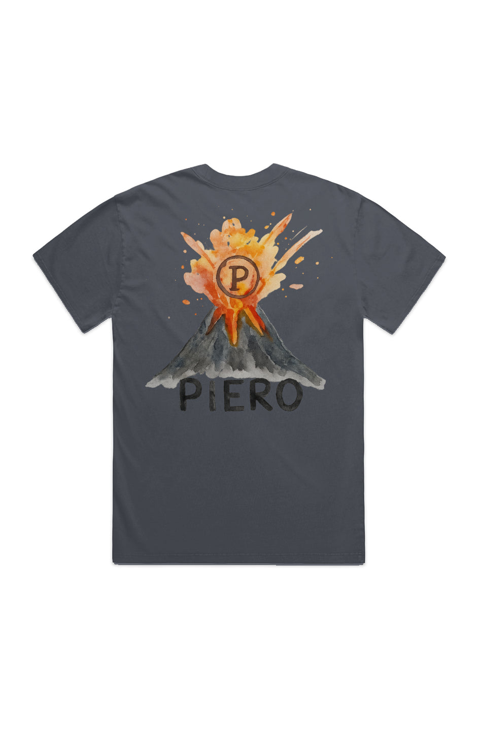 The Volcano Indigo Tee by PIERO is a symbol of hidden power. At first glance, it's clean, composed — a refined logo on the chest. But turn around, and it explodes into raw expression: a hand-painted volcano blasting the PIERO emblem into the sky.