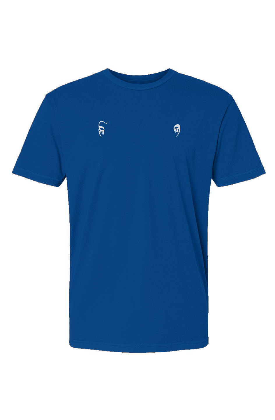 The Twin Mask Royal Blue Tee by PIERO explores the idea of duality through symmetry. Two mirrored mask icons float across the chest — not loud, but unmistakably intentional. They're the same symbol, twice — reflected like identity in motion.